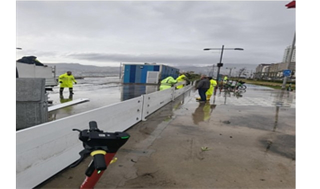 İzmir Büyükşehir Belediyesi’nin Kordon’da deniz taşkınlarını önlemek ve İzmirlilerin kıyı şeridini daha konforlu kullanmasını sağlamak emeliyle hayata geçirdiği süreksiz fırtına duvarı, kenti tesiri altına alan sağanak yağış ve fırtına sırasında deniz taşkınını engelledi. İzmir Büyükşehir Belediyesi Fen İşleri Dairesi Başkanlığı grupları, Meteoroloji Genel Müdürlüğü’nün ihtarlarının akabinde süreksiz fırtına duvarının kapılarını faal hale getirerek muhtemel risklere karşı tedbir aldı.