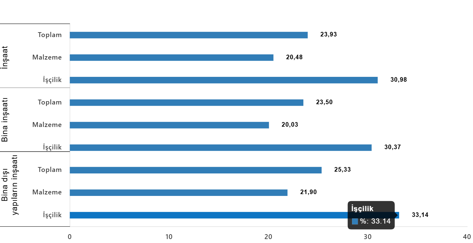 Bina inşaatı maliyet endeksi, bir evvelki aya nazaran %1,14 arttı, bir evvelki yılın birebir ayına nazaran %23,50 arttı. Bir evvelki aya nazaran gereç endeksi %1,69 arttı, personellik endeksi %0,17 arttı. Ayrıyeten bir evvelki yılın tıpkı ayına nazaran gereç endeksi %20,03 arttı, personellik endeksi %30,37 arttı.