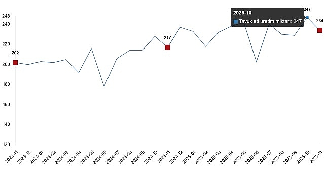 Tavuk eti üretimi 233 bin 887 ton, tavuk yumurtası üretimi 1,77 milyar adet olarak gerçekleşti